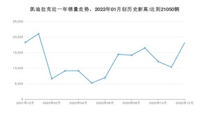在国内市场上,凯迪拉克,在2022年12月的销量为18174辆,同比下降0.47%,环比增长76.67%。2021年12月-2022年12月份,凯迪拉克累计销量为161932辆,较去年同期下降38.75%。