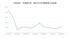 2022年12月,红旗H9销量为1322辆,同比下降69.15%,环比增长64.63%。2021年12月-2022年12月份,红旗H9销量为19378辆,同比下降47.1%。