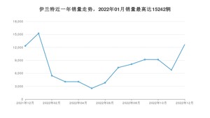 2022年12月,伊兰特销量为12656辆,同比增长2.56%,环比增长87.55%。2021年12月-2022年12月份,伊兰特销量为100690辆,同比下降27.57%。