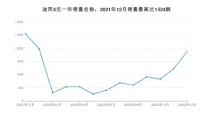 2022年12月,途昂X销量为1128辆,同比下降25.98%,环比增长53.26%。2021年12月-2022年12月份,途昂X销量为7613辆,同比增长60.78%。