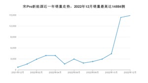 2022年12月,宋Pro新能源销量为14884辆,同比增长1%,环比增长3.69%。2021年12月-2022年12月份,宋Pro新能源销量为58276辆,同比增长683.7%。