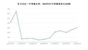 2022年12月,宝马品牌总体销量达到52413辆,其中宝马X6销量达到309辆,占品牌总销量的0.59%。