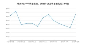 2022年12月,瑞虎8销量为6637辆,同比增长5.94%,环比增长106.7%。2021年12月-2022年12月份,瑞虎8销量为64760辆,同比下降44.93%。