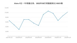 2022年12月,Aion Y销量为10235辆,同比增长56.21%,环比增长18.34%。2021年12月-2022年12月份,Aion Y销量为93252辆,同比增长197.16%。