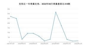 2022年12月,发现销量为14辆,同比下降94.83%,环比增长27.27%。2021年12月-2022年12月份,发现销量为1384辆,同比下降77.37%。