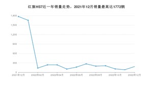 2022年12月,红旗HS7销量为183辆,同比下降89.67%,环比增长120.48%。2021年12月-2022年12月份,红旗HS7销量为5352辆,同比下降65.58%。