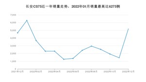 2022年12月,长安CS75销量为5208辆,同比增长11.35%,环比增长259.92%。2021年12月-2022年12月份,长安CS75销量为38364辆,同比下降85.56%。