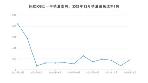 2022年12月,标致508销量为185辆,同比下降78%,环比增长156.94%。2021年12月-2022年12月份,标致508销量为2978辆,同比下降66.66%。