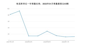 2022年12月,帕里斯帝销量为12辆,同比下降85.37%,环比增长9.09%。2021年12月-2022年12月份,帕里斯帝销量为270辆,同比下降81.22%。