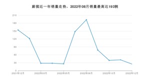 2022年12月,蔚揽销量为25辆,同比下降83.77%,环比下降39.02%。2021年12月-2022年12月份,蔚揽销量为882辆,同比增长31.05%。
