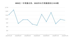 2022年12月,MINI销量为1100辆,同比下降28.25%,环比下降6.86%。2021年12月-2022年12月份,MINI销量为15494辆,同比下降33.28%。