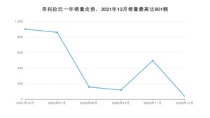 2022年12月,昂科拉销量为37辆,同比下降95.89%,环比下降92.54%。2021年12月-2022年12月份,昂科拉销量为2569辆,同比下降73.59%。