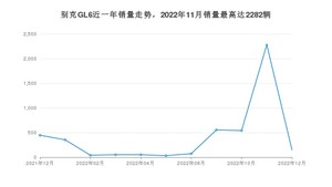 2022年12月,别克GL6销量为150辆,同比下降66.44%,环比下降93.43%。2021年12月-2022年12月份,别克GL6销量为4575辆,同比下降52.29%。