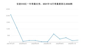 2022年12月,宝骏510销量为144辆,同比下降93.03%,环比增长32.11%。2021年12月-2022年12月份,宝骏510销量为4902辆,同比下降88.49%。
