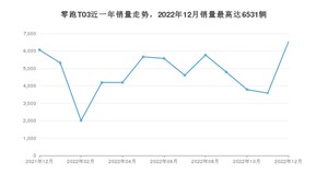 2022年12月,零跑T03销量为6531辆,同比增长7.63%,环比增长82.23%。2021年12月-2022年12月份,零跑T03销量为62117辆,同比增长51.53%。