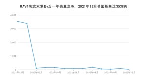 2022年12月,RAV4荣放双擎E+销量为32辆,同比下降99.1%,环比下降66.32%。2021年12月-2022年12月份,RAV4荣放双擎E+销量为8071辆,同比下降79.95%。