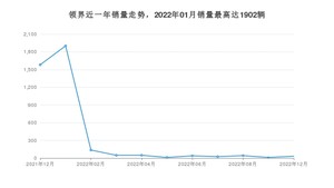 2022年12月,领界销量为32辆,同比下降97.98%,环比增长190.91%。2021年12月-2022年12月份,领界销量为3876辆,同比下降79.9%。
