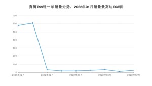 2022年12月,奔腾T99销量为26辆,同比下降95.5%,2021年12月-2022年12月份,奔腾T99销量为1351辆,同比下降86.1%。