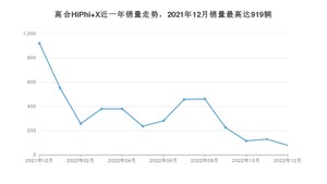2022年12月,高合HiPhi X销量为78辆,同比下降91.51%,环比下降39.06%。2021年12月-2022年12月份,高合HiPhi X销量为4456辆,同比增长4.92%。