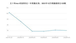 2022年12月,五十铃mu-X牧游侠销量为30辆,同比下降76%,2021年12月-2022年12月份,五十铃mu-X牧游侠销量为317辆,同比下降75.37%。