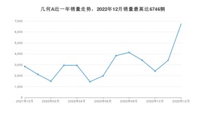 2022年12月,几何A销量为6746辆,同比增长137.12%,环比增长97.66%。2021年12月-2022年12月份,几何A销量为39742辆,同比增长193.58%。