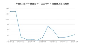 2022年12月,奔腾T77销量为328辆,同比下降80.02%,环比增长40.77%。2021年12月-2022年12月份,奔腾T77销量为5997辆,同比下降72.7%。