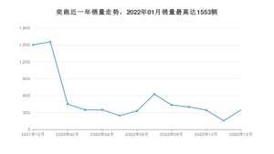 2022年12月,奕跑销量为347辆,同比下降76.91%,环比增长123.87%。2021年12月-2022年12月份,奕跑销量为7084辆,同比下降68.6%。