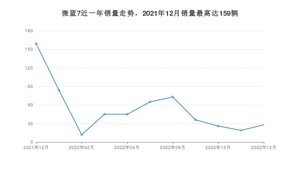 2022年12月,微蓝7销量为28辆,同比下降82.39%,环比增长47.37%。2021年12月-2022年12月份,微蓝7销量为592辆,同比下降41.27%。