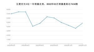 2022年12月,五菱宏光V销量为4843辆,环比增长34.6%。2021年12月-2022年12月份,五菱宏光V销量为60714辆,同比下降23.28%。