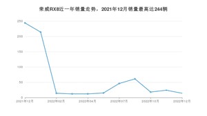 2022年12月,荣威RX8销量为14辆,同比下降94.26%,环比下降41.67%。2021年12月-2022年12月份,荣威RX8销量为674辆,同比下降77.93%。