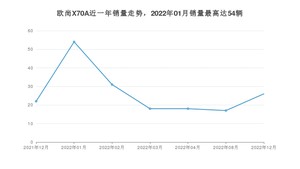 2022年12月,欧尚X70A销量为26辆,同比增长18.18%,2021年12月-2022年12月份,欧尚X70A销量为186辆,同比下降98.86%。