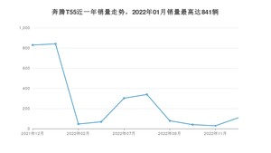 2022年12月,奔腾T55销量为108辆,同比下降86.97%,环比增长272.41%。2021年12月-2022年12月份,奔腾T55销量为2680辆,同比下降65.05%。
