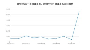 2022年12月,枫叶60s销量为5533辆,环比增长1%。2021年12月-2022年12月份,枫叶60s销量为12303辆,