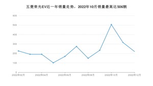 2022年12月,五菱荣光EV销量为220辆,环比下降30.38%。2021年12月-2022年12月份,五菱荣光EV销量为2575辆,