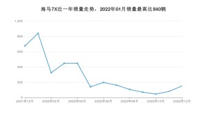 2022年12月,海马7X销量为151辆,同比下降77.66%,环比增长88.75%。2021年12月-2022年12月份,海马7X销量为3690辆,同比下降46.12%。