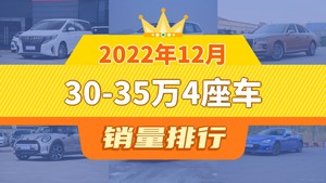 2022年12月的乘用车销量数据已经出炉,据众车网汽车行业数据监测显示,12月国内乘用车市场销量达到193.2万辆,同比下降13.22%,环比增长60.69%。每月各个细分市场的销量排行榜,也成为了大家所关注的话题,今天众车网为大家带来了,2022年12月30-35万4座车的销量排行榜单,有哪些车型能跻身销量榜呢?下面我们直接看数据。