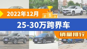 2022年12月的乘用车销量数据已经出炉,据众车网汽车行业数据监测显示,12月国内乘用车市场销量达到193.2万辆,同比下降13.22%,环比增长60.69%。每月各个细分市场的销量排行榜,也成为了大家所关注的话题,今天众车网为大家带来了,2022年12月25-30万跨界车的销量排行榜单,有哪些车型能跻身销量榜呢?下面我们直接看数据。