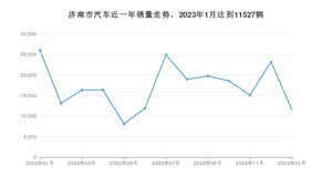 2023年1月,济南市汽车总销量为11527辆,同比下降55.74%,环比下降50.47%。2022年01月-2023年01月份,济南市总销量为224175辆,同比下降18.04%。在最近1年中,济南市销量在2022年01月达到最高,销量为26043辆。