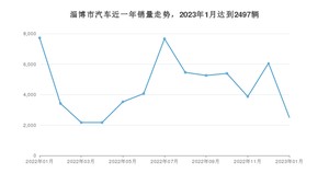 2023年1月,淄博市汽车总销量为2497辆,同比下降67.65%,环比下降58.81%。2022年01月-2023年01月份,淄博市总销量为59258辆,同比下降31.64%。在最近1年中,淄博市销量在2022年01月达到最高,销量为7718辆。