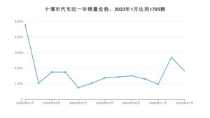 2023年1月,十堰市汽车总销量为1795辆,同比下降62.34%,环比下降33.2%。2022年01月-2023年01月份,十堰市总销量为22130辆,同比下降44.9%。在最近1年中,十堰市销量在2022年01月达到最高,销量为4766辆。