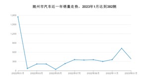 2023年1月,随州市汽车总销量为382辆,同比下降78.12%,环比下降47.46%。2022年01月-2023年01月份,随州市总销量为5345辆,同比下降61.94%。在最近1年中,随州市销量在2022年01月达到最高,销量为1746辆。