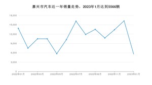 2023年1月,嘉兴市汽车总销量为5566辆,同比下降59.82%,环比下降65.82%。2022年01月-2023年01月份,嘉兴市总销量为145894辆,同比下降6.01%。在最近1年中,嘉兴市销量在2022年12月达到最高,销量为16284辆。