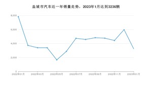 2023年1月,盐城市汽车总销量为3236辆,同比下降58.66%,环比下降45.88%。2022年01月-2023年01月份,盐城市总销量为55385辆,同比下降32.4%。在最近1年中,盐城市销量在2022年01月达到最高,销量为7828辆。