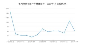 2023年1月,池州市汽车总销量为617辆,同比下降67.11%,环比下降52.24%。2022年01月-2023年01月份,池州市总销量为8518辆,同比下降40.83%。在最近1年中,池州市销量在2022年01月达到最高,销量为1876辆。