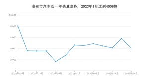 2023年1月,淮安市汽车总销量为4006辆,同比下降50.16%,环比下降31.25%。2022年01月-2023年01月份,淮安市总销量为55669辆,同比下降26%。在最近1年中,淮安市销量在2022年01月达到最高,销量为8038辆。
