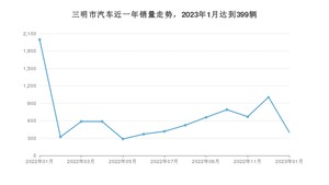 2023年1月,三明市汽车总销量为399辆,同比下降80.03%,环比下降60.42%。2022年01月-2023年01月份,三明市总销量为8612辆,同比下降53.86%。在最近1年中,三明市销量在2022年01月达到最高,销量为1998辆。