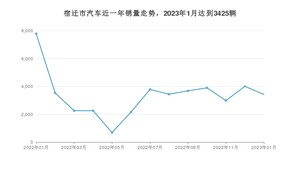 2023年1月,宿迁市汽车总销量为3425辆,同比下降56.04%,环比下降14.48%。2022年01月-2023年01月份,宿迁市总销量为43900辆,同比下降34.02%。在最近1年中,宿迁市销量在2022年01月达到最高,销量为7791辆。