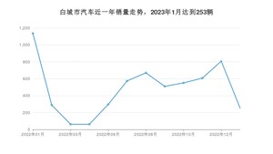 2023年1月,白城市汽车总销量为253辆,同比下降77.73%,环比下降68.69%。2022年01月-2023年01月份,白城市总销量为5820辆,同比下降49.12%。在最近1年中,白城市销量在2022年01月达到最高,销量为1136辆。