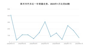 2023年1月,黑河市汽车总销量为63辆,同比下降84.44%,环比下降64%。2022年01月-2023年01月份,黑河市总销量为1906辆,同比下降57.03%。在最近1年中,黑河市销量在2022年01月达到最高,销量为405辆。