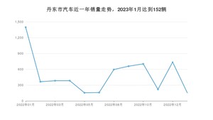 2023年1月,丹东市汽车总销量为152辆,同比下降89.12%,环比下降79.35%。2022年01月-2023年01月份,丹东市总销量为5902辆,同比下降60.47%。在最近1年中,丹东市销量在2022年01月达到最高,销量为1397辆。